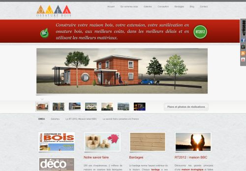 Avec la participation de maitres d'oeuvre, OMEA propose à ses clients une ossature bois canadienne. Cette ossature bois permet la construction ou l'agrandissement de maison en bois. L'ossature bois OMEA est élaborée de telle manière que votre maison bois respecte la rt2012, vous offrant bien être, de plus économie et écologie se conjugue à la perfection. OMEA a participé notamment à la construction de maison en bois sur Toulouse, en région Midi Pyrénées, en Aquitaine, vers Bordeaux par exemple