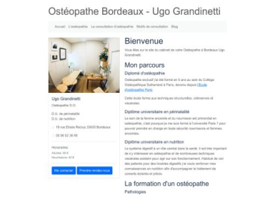 Bienvenue vous êtes sur le site du cabinet de votre ostéopathe Ugo Grandinetti, vous y trouverez divers informations sur l'Ostéopathie et le déroulement de la consultation.