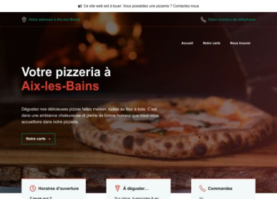 Ce site internet a été créé dans le but de vous recommander les produits de votre pizzeria à Aix-les-Bains. En effet, vous pouvez vous y rendre pour déguster ses pizzas délicieuses qui sont faites maison et cuites au four à bois. Le plus intéressant est que vous pouvez passer votre commande par appel téléphonique. De plus, votre pizzeria vous réserve un accueil chaleureux pour déguster sur place ses pizzas. Vous avez la possibilité aussi de commander votre pizza à emporter ou en livraison. Il vous suffit d'aller sur le site internet pizzeria-aixlesbains.fr. Ainsi, vous allez découvrir sa carte de pizzas, son adresse et ses derniers articles.