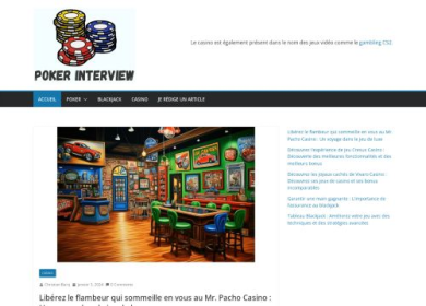 Découvrez pokerinterview.fr, votre référence en ligne pour toutes les astuces liées au monde du casino, du blackjack, et bien plus encore. Explorez notre sélection minutieuse d'articles et de conseils pour améliorer vos compétences de jeu. Que vous soyez un novice ou un joueur expérimenté, pokerinterview.fr vous propose une mine d'informations pour perfectionner votre stratégie. Explorez nos rubriques dédiées aux astuces de casino, aux tactiques de blackjack, et bien d'autres conseils pertinents.