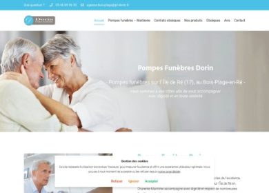 Le site de Pompes Funèbres Dorin contient des informations concernant le savoir faire et les services proposés par cette entreprise dans la région de La Rochelle, ainsi que les coordonnées et le plan d'accès.