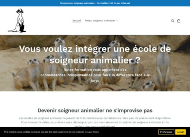 Le métier de soigneur animalier consiste à s'occuper des animaux des parcs zoologiques et de l'entretien de leurs enclos. Son travail consiste principalement à préparer les aliments et à les distribuer à tous les animaux du zoo. Mais aussi à nettoyer les cages, les bassins et les volières. Les animaux sauvages doivent aussi être surveillés pour détecter rapidement les signes d'une maladie ou d'un autre mal-être. Le soigneur animalier observe quotidiennement les animaux et signale toute les anomalies aux responsables animaux ou au vétérinaire de l'établissement. Le métier de soigneur animalier fait appel à des attitudes physiques, mais aussi à un sens de l'observation. Il faut aussi avoir de bonnes connaissances en biologie et dans le comportement des animaux. Ces compétences peuvent s'acquérir plus vite si l'on suit une formation spécialisé. Le cursus Préparation soigneur animalier a pour objectif d'initier toutes les personnes qui s'intéressent aux parcs zoologiques, aux métiers de soigneurs animaliers ou simplement à la faune sauvage. Des cours en direct sont donnés par visioconférences. Il est possible de suivre cette formation depuis internet partout dans le monde. Plusieurs modules permettent d'aborder les principaux thèmes de l'élevage des animaux sauvages et du fonctionnement d'un parc zoologique. Les apprenants qui suivent tous les modules auront alors toutes les connaissances théoriques requises pour postuler dans une école de soigneur animalier. Depuis 2017, plusieurs apprenants ont intégré des écoles reconnues par l'État et travaillent maintenant comme soigneur animalier en parc zoologique.