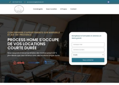 Process Home est une entreprise de conciergerie personnalisée basée à Marseille. Elle offre des services sur mesure pour répondre aux besoins des particuliers et des entreprises. Que ce soit pour la gestion de votre location, l'optimisation des prix, le ménage, Process Home met à votre disposition une équipe de professionnels expérimentés et dévoués. Leur expertise et leur attention au détail garantissent une prestation de qualité supérieure, sur mesure et adaptée à vos besoins spécifiques. Avec Process Home, vous pouvez être sûr que tout sera géré avec efficacité et discrétion, pour vous offrir une expérience sans souci.