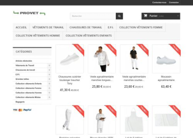 Vous cherchez des vêtements, des chaussures ou des équipements professionnels de qualité ? Provet vous propose une gamme très large de produits dans les domaines de la restauration, la santé, le bâtiment, l'agroalimentaire. Mode homme, femme, enfants, grande taille, vous trouverez simplement ce que vous chercher. De plus, notre service commercial est là pour répondre à toutes vos demandes. N'hésitez plus et venez visiter notre site internet !