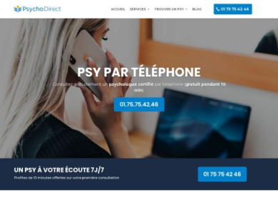 Vous ressentez le besoin de consulter un psychologue ? Psycho-direct.fr est un site qui regroupe de nombreux psychologues disponibles tous les jours de la semaine pour vous aider et vous conseiller directement par téléphone. Une aubaine lorsque l'on constate qu'il faut généralement 3 semaines avant d'obtenir un rendez-vous chez un spécialiste. Grâce à notre service, vous pouvez consulter à tout moment et où que vous soyez.