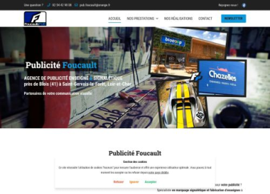 Besoin de mettre en valeur votre boutique dans le Loir-et-Cher ? Faîtes appel à Publicité Foucault, voter agence spécialisée en enseignes et signalétiques à Blois (41). Enseignes lumineuses ou non lumineuses, signalétique, mais également banderoles, panneaux 4x3, roll up, flocage voiture... retrouvez plus d'infos sur le nouveau site internet de Publicité Foucault, votre agence spécialiste en signalétique et enseigne à Blois (41).