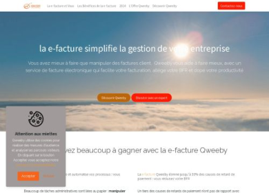 QWEEBY fournit un service de facturation électronique pour dématérialiser les factures clients. A partir de factures PDF réalisées par l'outil de facturation de l'émetteur, la solution QWEEBY assure la transmission tracée des factures (relances, alertes, notifications…) en conformité avec le cadre légal et fiscal de référence (art. 289-V du Code Général des Impôts). QWEEBY répond aux cahiers des charges des clients destinataires (génération d'un flux structuré à partir de factures PDF).