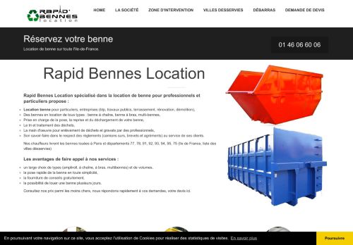 Livraison de benne en 24 et 48 heures dans les départements suivants : 75, 77, 78, 91, 92, 93, 94 et 95 pour les professionnels et les particuliers qui désirent se débarrasser de déchets ou gravats. Nous nous occupons de tout afin de vous permettre de vider et nettoyer vos différents chantiers. Nous fournissons aussi, sur devis, une main d'oeuvre pour effectuer le chargement à votre place.