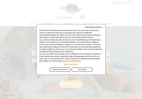 La société de construction Recobat 68 se situe à Saint-Amarin, à proximité de Thann et de Mulhouse, dans le département du Haut-Rhin, en région Alsace. L'entreprise Recobat 68 met à votre disposition ses compétences d'entreprise du bâtiment multicompétente depuis 2010, pour construire ou rénover votre maison : société de gros œuvre et maçonnerie , experte dans la rénovation immobilière, prestations de maçonnerie générale, de gros œuvre, de rénovation intérieure et extérieure, démolition des éléments existants (murs porteurs, etc.), réalisation de murets, d'allées, travaux d'agrandissement, de création d'extensions, pavage et dallage de vos allées et également de votre piscine, mise en place de revêtements de sols ou de murs (carrelage, parquet, faïence, etc.), mais aussi des travaux de ragréage, de déneigement, etc.