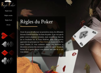 Pour devenir des joueurs professionnels et remporter tous vos paris sur le poker, il est important que vous maitrisiez les bases du poker et les règles. C'est en effet ce que vous propose regle-poker.info à travers ce site internet. Sur ce site, plusieurs articles indispensables ont été développés en détail pour vous dévoiler tous les secrets du poker.