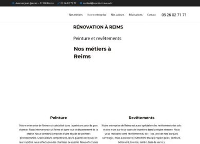 Peinture et revêtements Notre entreprise de Reims est spécialisé dans la peinture pour de gros chantier. Nous intervenons sur Reims et dans tout le département de la Marne. Nous sommes composés d'une équipe de peintres professionnels. Grâce à leurs compétences, leurs qualités de travail et leur rapidité, nous effectuons des chantiers de qualité. Nous effectuons des travaux de peinture dans votre intérieur comme votre extérieur. Nous travaillons différents types de peinture comme la peinture acrylique, peinture murale, peinture décorative, peinture sol, peinture bois. Notre entreprise de Reims est aussi spécialisé des revêtements des sols et des murs sur tous types de chantiers dans la région rémoise. Nous vous réalisons votre revêtement du sol ( lino, jonc de mer, parquet, carrelage..) mais aussi votre revêtement mural ( Papier-peint, peinture, béton ciré, faïence, lambri, toile de verre..).