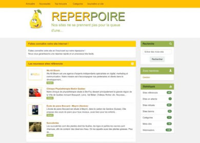 Réperpoire est un annuaire généraliste de sites web sur lequel tout le monde peut proposer son site. De nombreuses catégories sont à disposition et les suggestions de nouvelles catégories sont prises en compte.
