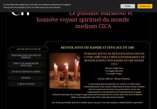 De nos jours les séparations amoureuse sont monnaie courante. Plus personne ne crains rien. L'homme quitte la femme et la femme aussi quitte son homme sans raison. Tu es dans un couple et tu veux vivre en une vie de couple paisible, rassure toi que le puisant marabout retour d'affection rapide et efficace en 24h vous garantie une satisfaction totale. Tu veux d'une d'une personne mais tu as du mal à t'en approcher. Vous avez les meilleurs rituels avec le medium Cica connu dans sa spécialité de retour affectif pour récupérer son ex immédiatement et pour toujours. Vous aurez la paix du cœur et la joie de vivre. Témoignage retour d'affection rapide, savon et parfum de chance,prospérité, richesse et beaucoup de choses. Soyez rassuré et votre satisfaction est garantie