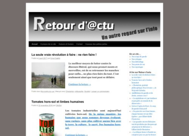 Retour d'actu est un blog d'informations administré par deux journalistes : de leur pseudo Ruddy V et Ernst Calafol. Ils sont l'un et l'autre des "anciens" de l'institut pratique de journalisme (IPJ) de Paris. Tous deux, une fois leur carte de presse en poche, se sont donnés pour mission d'être les empêcheurs-de-tourner-en-rond de la vie médiatique. Comment ? En publiant des chroniques critiques, voire franchement grinçantes, sur l'actualité politique et sociale…