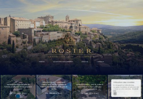 L'agence Rosier, spécialisée dans l'immobilier de prestige dans le Luberon, vous propose le meilleur des propriétés haut de gamme. Située à Gordes dans le Vaucluse, l'agence saura vous guider vers le bien dont vous rêvez. Ou pour les propriétaires vendeurs, votre bien partira en peu de temps. N'hésitez pas à prendre un rendez-vous pour une estimation.