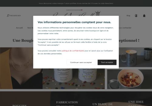 Découvrez la marque de bougies avec bijoux Royal Secret Candle. Fabrication artisanale française à base d'ingrédients naturels. Cire de soja végétale et parfum de Grasse sans CMR ni Phtalate. A l'intérieur de chaque bougie se cache un bijou argent ou doré en acier chirurgical ou titane au top des tendances de l'univers de la bijouterie. Vous avez le choix entre des bracelets ou des colliers. La cire est coulé dans un joli mug décoré avec subtilité. Un cadeau 3 en 1 : une bougie, un bijou et un mug en céramique. Royal Secret Candle vous offre la possibilité de personnaliser votre bougie avec un message : un cadeau parfait pour la fete des mère, saint valentin, noel ou tout autres occasions. De nombreux parfums disponibles : boisés, fruités, frais ou gourmand pour le plus grand plaisir de votre odorat et de votre intérieur.
