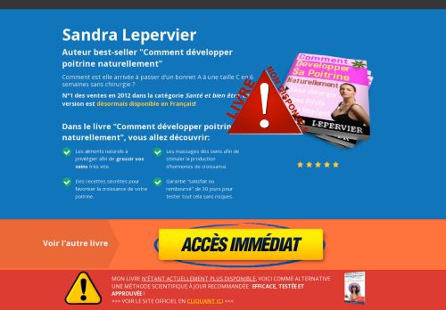 Retrouvez le site de Sandra Lepervier qui présente son histoire, son parcourt qui l'a amené à dédier sa carrière vers cette problématique que rencontre de nombreuses femmes aujourd'hui. Avoir une poitrine et des seins plus important afin d'avoir une meilleure confiance en soi et être plus à l'aise dans son corps sont des sujets qui intéressent de nombreuses jeunes filles et femmes de tout age. Grâce à un alimentation saine qui favorise la libération d'hormones pour le corps ainsi que des massages afin de stimuler les muscles et tonifier vos seins, vous bénéficierez de la meilleure approche pour grossir sa poitrine sans avoir recourt à la chirurgie qui est toujours aussi dangereuse et reste très coûteuse. Sandra Lepervier a récemment traduit son livre en français afin de permettre aux femmes française désireuses de lire ses techniques et mettre en place les exercices dans leur vie pour leur corps.