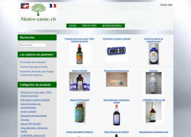 Notre-sante.ch est une vitrine de vente on line d'articles naturels tels que l'Argent colloïdal (puissant antibiotique naturel), les diapasons du chakra : la méditation par les musiques et les ondes, la médecine quantique, la médecine Ayurvédique, les bougies auriculaires, et nos cosmétiques au