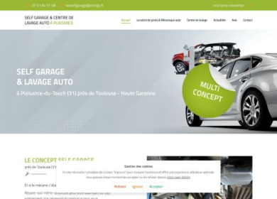 Votre garage libre service et station de lavage à Plaisance du Touch (31) près de Toulouse vous présente son nouveau site internet. Vous y découvrez l'ensemble des services et prestations du self garage et de la station de lavage : entretien et réparation mécanique de votre auto, service de self garage ou assistance d'une équipe de mécaniciens présente en continue, modalités de réservation, matériel de nettoyage voiture, équipement disponible… Découvrez tous les services sur le site internet.