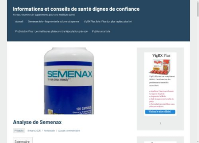 Dans le monde des compléments alimentaires pour hommes, Semenax a attiré l'attention en tant que formule naturelle conçue pour améliorer le volume du sperme, l'intensité de l'orgasme et la santé reproductive en général. Commercialisé en tant que complément alimentaire, il est composé d'un mélange d'extraits de plantes, d'acides aminés et de nutriments essentiels qui soutiennent la fonction sexuelle masculine. Mais ce produit est-il vraiment efficace ? Cet article explore les ingrédients, les avantages, les effets secondaires potentiels et l'efficacité globale de Semenax.