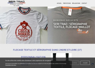 SERI TRAD à tours Indre-et-Loire (37) vous propose ses services en matière de sérigraphie textile, T-shirt personnalisé, Impression sur textile, personnalisation textile, flocage textile et flocage maillot.Pour en savoir davantage sur nos prestations, contactez-nous au 0688245669 ou via notre formulaire en ligne