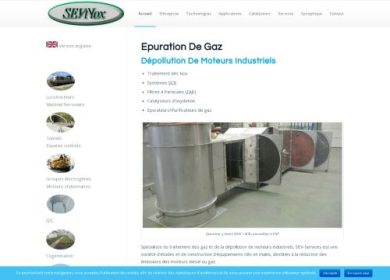 de gaz : telle est la spécialité de la société Sev-Services. Le package Sev-NOx repose sur une technologie standard et éprouvée (DOC-DeNoxSCR-FAP-Ammonia slip). Le plus de SEV-Services est l'intégration du système sur mesure dans l'environnement industriel du moteur traité.