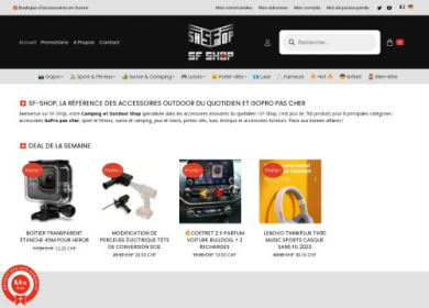 SF-Shop, spécialiste en vente d'accessoires outdoor, vous propose un large choix de produits de qualité au meilleur prix. Sport et fitness, survie et camping, jeux et loisirs, goodies, luxe. Vous trouverez tout ce dont vous avez besoin chez Sf-Shop. La boutique propose également des équipements pour votre Go Pro ainsi que des accessoires spécifiquement adaptés pour la vape.