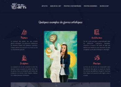 Le domaine artistique est subdivisé en plusieurs branches, la peinture, l'architecture, la sculpture, la musique, etc. Grâce au portail sitedesarts.fr, vous aurez la chance de vous imprégner des différentes spécificités de chacune des branches de l'art.