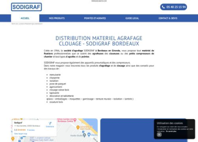 Sodigraf est un magasin spécialisé dans la vente de matériel d'agrafage et de clouage sur la ville de Bordeaux. Rendez-vous chez ce spécialiste pour l'achat d'un cloueur, d'une agrafeuse marteau ou d'un compresseur. Trouvez tout le matériel dont vous avez besoin pour vos travaux en quelques clics sur le site internet de la société Sodigraf.