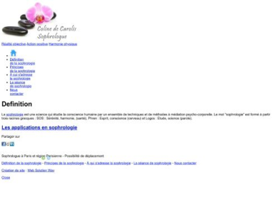 Diplômée de l'Académie de Psychologie et de Sophrologie de Paris, Coline de Carolis vous écoute et vous guide sur les techniques de relaxation adaptées à votre personne. La sophrologie est une science qui étudie la conscience humaine par un ensemble de techniques et de méthodes à médiation psycho-corporelle. Le mot "sophrologie" est formé à partir trois racines grecques : SOS : Sérénité, harmonie, (santé), Phren : Esprit, conscience (cerveau) et Logos : Etude, science (parole).