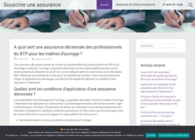 Souscrire une assurance est un blog dédié aux assurances. Les internautes pourront découvrir les informations et conseils pour bien choisir leurs assurances. Grâce aux articles publiés, nous vous orienterons vers les meilleurs choix d'assurance auto, moto, habitation, garantie décennale, mutuelle santé, obsèques…