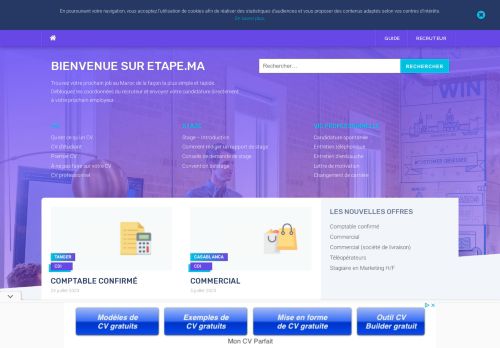 Stage.etape.ma est le site Internet référence du stage au Marc. Un service de liaison entre les candidats de stage et les sociétés et organismes qui cherchent des profils stagiaires. Consultez les dernières offres et contactez directement les entreprises et sociétés qui recrutent. Vous y retrouvez également un espace de conseils en carrière avec des articles et astuces pour un bon appui et mieux comprendre le processus d'embauche et de recrutement.