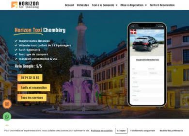 Le site taxichambery.fr est une plateforme en ligne dédiée à la réservation de services de taxis à Chambéry et dans sa région. Le design du site est simple et fonctionnel, offrant une expérience utilisateur conviviale et efficace.