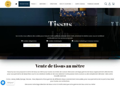 Découvrez notre large collection de tissu au mètre en vente en ligne sur Tissus by Lulu. Nous avons sélectionné différentes sortes de tissus afin de vous proposer ce qui se fait de mieux pour la création de couture et la réalisation de pièce d'habillement, linge de maison.