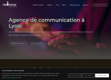 Unimage Communication est une agence spécialisée dans le domaine des productions audiovisuelles, photographiques, du motion design, dans les créations graphiques (logotype, charte graphique, présentations Prezi…) et web (conception des sites web + SEO). Nous offrons une gamme complète de services : dès la conception jusqu'à la diffusion ou la mise en ligne. Nos équipes sont basées à Lyon et à Paris.