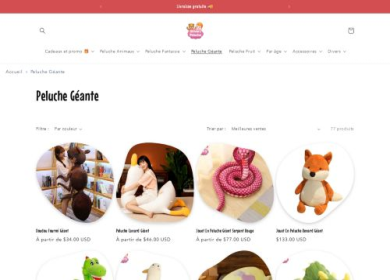 Notre site propose des animaux en peluches avec tout sorte d'effigie. Vous trouverez les peluches les plus célèbres comme la grosse peluche géante, la peluche chat, pour ceux qui aiment la peluche classique il y a l'ours en peluche! Nous proposons aussi des peluches xxl mais aussi des peluches TY avec des gros yeux hyper doux et remplies de tendresse. Nos peluches sont tous lavable en machine et en coton ce qui garantit un rembourrage de qualité!