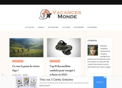 Sur ce site dédié aux voyages, les articles d'information y foisonnent pour vous aider à réussir vos projets de voyage sans aucune difficulté. L'article intitulé ''Top 10 des lieux à visiter en France hors Paris'' par exemple fait la lumière sur les plus beaux endroits (hormis la ville de Paris) que vous pouvez visiter en posant vos valises en France. Aussi, les articles que vous découvrirez en parallèle vous guideront dans le choix des accessoires à prioriser, les dispositions à prendre pour organiser et réussir tous vos projets de voyage dans les meilleures conditions requises.