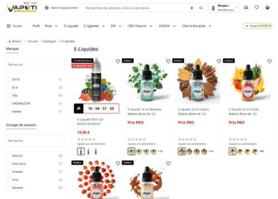 Découvrez l'univers des e-liquides sur Vapoti.com, votre destination ultime pour une expérience de vapotage inégalée. Notre catalogue propose une vaste sélection de saveurs exquises, allant des classiques intemporels aux créations originales, toutes méticuleusement conçues avec un souci constant de qualité et d'innovation.