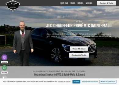 JLC Chauffeur Privé VTC Saint-Malo est un service de VTC basé à Saint Coulomb, Saint Malo et Dinard, disponible 24h/24 et 7j/7 pour tous vos déplacements locaux, régionaux et nationaux. Leurs services incluent des transferts longue distance, des transferts aéroport, gare, port et plage, ainsi que des services pour les mariages et les événements d'affaires. Ils assurent également des circuits touristiques à travers Saint-Malo et d'autres destinations locales.