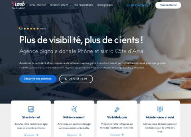 Agence à taille humaine située en région lyonnaise et en région PACA, VWEB accompagne les professionnels et associations dans le développement de leur visibilité sur le net. Nous pourrons ainsi réaliser votre site internet et assurer son référencement sur les moteurs de recherche. Quelque soit vos besoins, nous pourrons vous proposer la solution la plus adaptée !