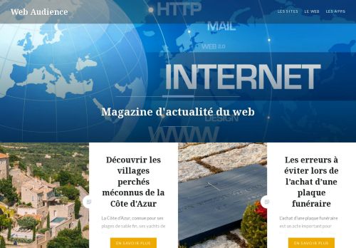 Vous recherchez un site d'actualités sur le web. Eh bien ! Préférez Web Audience qui reste le meilleur choix que vous pouviez faire. En tant que magazine en ligne de référence, cette plateforme vous propose en effet un vaste catalogue d'articles intéressants portés par des conseils avisés, astuces pratiques, informations utiles et guides pertinents. Des ressources qui sauront vous permettre d'appréhender au mieux comment exploiter le Net et les nouvelles technologies pour développer la visibilité de votre entreprise, mais aussi améliorer votre quotidien dans plusieurs autres domaines de la vie pratique. Pour vous en faire une meilleure idée, visitez le lien associé à cette fiche descriptive.