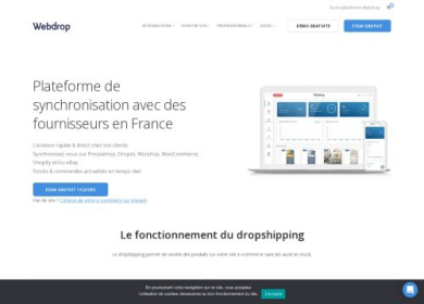 Webdrop propose des sites clé en main en dropshipping, pour les personnes qui veulent se lancer dans l'e-commerce. Nous créons un site e-commerce sous prestashop clé en main et nous intégrons les produits de nos fournisseurs à l'intérieur de la boutique. Ce qui vous permet d'avoir un site avec des milliers de références sans avoir de stock.