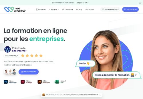 WeMentor offre une variété de formation pour aider les professionnels et les particulier à développer leurs compétences et réussir dans leurs carrières, avec des Formation dans la PAO, la bureautique ou encore le Web.