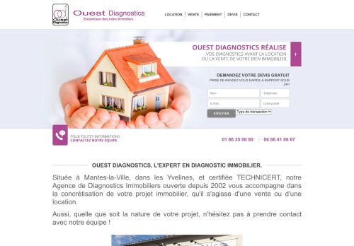 Si vous avez besoin d'un cabinet qui réalise les diagnostics amiante, loi Carrez, plomb, gaz, termites, électricité, performance énergétique, n'hésitez pas à faire appel à Ouest Diagnostics. Situé à Mantes la Jolie, dans les Yvelines, Ouest Diagnostics vous propose son savoir faire et intervient dans les Yvelines, l'Eure, l'Eure et Loire et le Val d'Oise.