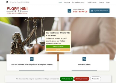 Pour vos besoins en conseils juridiques ou défense devant les tribunaux, faites appel à maître Edith FLORY HINI à Marseille 6ème. Installée au 21, cours Pierre Puget à Marseille (13006) à ; proximité de la préfecture, votre avocate en droit de la famille et droit de préjudice corporel intervient aussi en droit droits des baux pour résoudre les litiges entre locataires et bailleurs, ainsi qu'en droit de la responsabilité civile et le droit de la consommation et droit des assurances. Maître Edith FLORY HINI met tout en œuvre pour faire prévaloir vos droits et défendre vos intérêts.