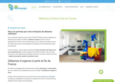 HD Nettoyage est une entreprise spécialiste de débarras et de nettoyage pour les particuliers et pour les professionnels à Paris et Ile De France. Son équipe expérimentée vous fournit un serivice débarras complet et un serice de nettoyage sur mesure pour vos appartements ! demande de devis gratuitement en ligne.