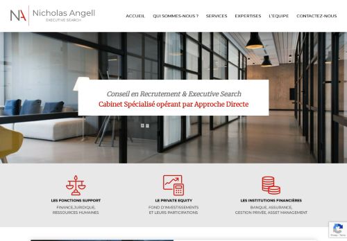 Destiné au recrutement de cadres dirigeants, le cabinet de conseil, Nicholas Angell, dispose d' un collectif de chasseurs de tête dans les secteurs de la finance, de la banque privée, de l'assurance et des ressources humaines.