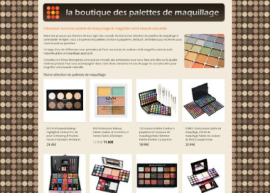 Pour comparer les prix et acheter en ligne une palette pour les yeux, les lèvres ou le visage, nous vous invitons à découvrir notre boutique spécialisée en ligne www.palette-maquillage.net.