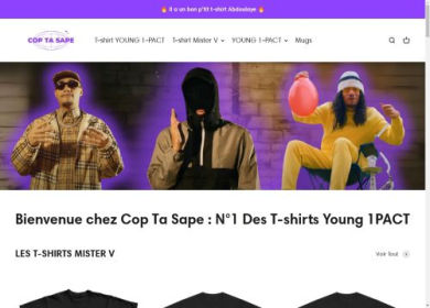 Cop Ta Sape est une boutique streetwear inspirée par Mister V et la pop culture. Nous proposons des vêtements et accessoires uniques, comme le T-shirt...