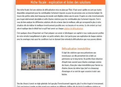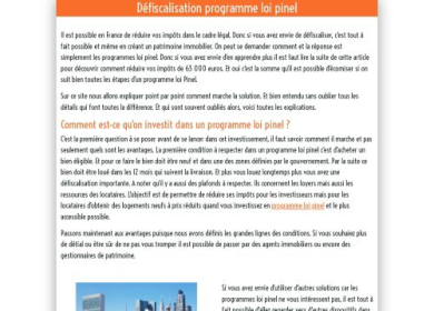 Lancez-vous dans la meilleure solution de défiscalisation disponible en France. Elle vise les biens immobiliers neufs mais par contre il y a beaucoup...